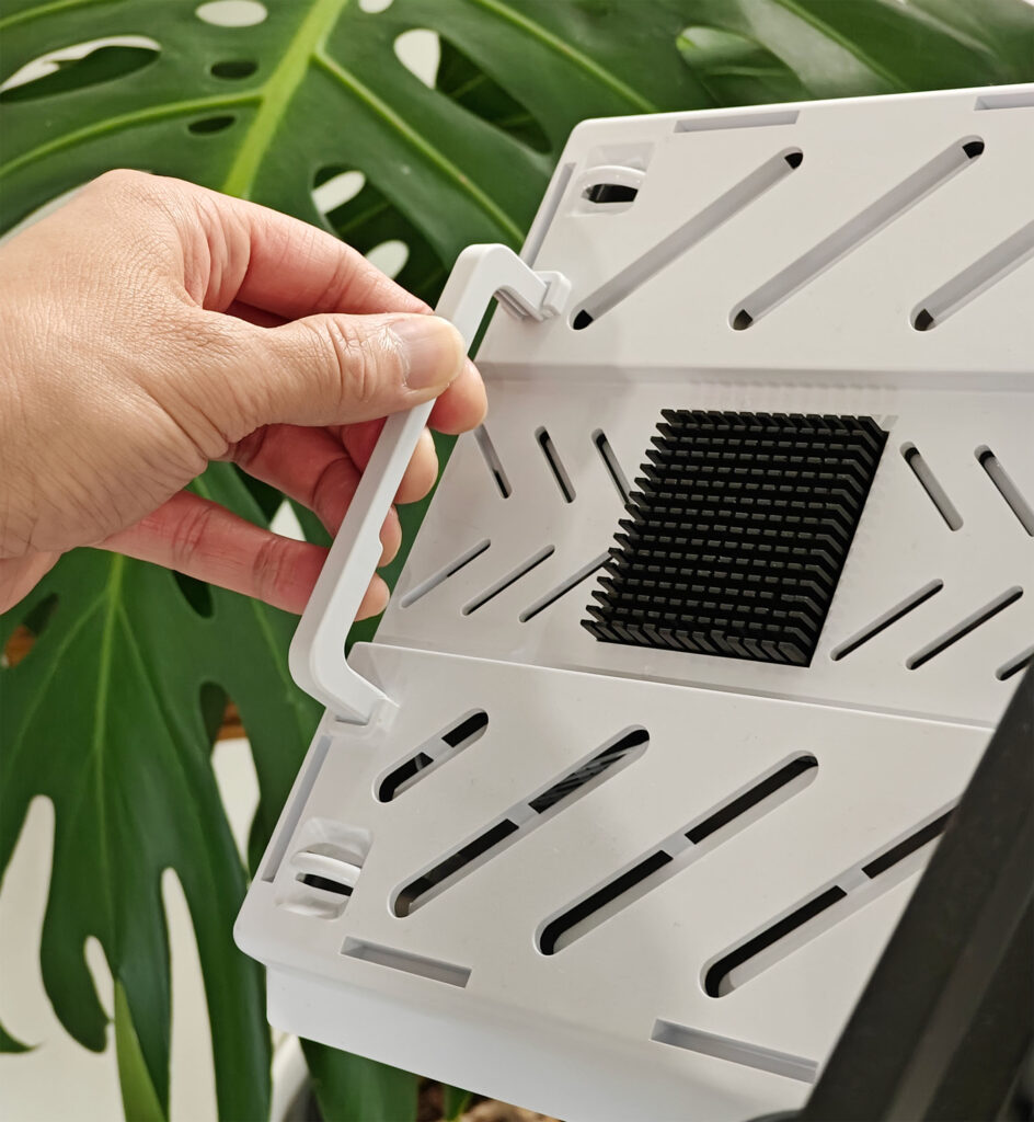 Heat is often a problem with high powered LED grow lights so LetPot uses two heat-dissipating metal grids and vents on the back side of the light panel. There are also two handles on opposite sides of the panel that allow you to easily position the light. To be fair, even when the grow light was on for several hours, the back of the panel was only slightly warm to the touch.